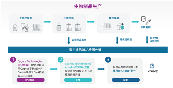 Cygnus的DNA提取方法采用了一種新型DNA carrier,能夠從痕量水平的殘留DNA中回收HCD,并在無(wú)蛋白質(zhì)、鹽和洗滌劑污染的環(huán)境中進(jìn)行DNA檢測和定量。這比其他提取方法提高了DNA檢測和擴增的可重復性和穩定性。