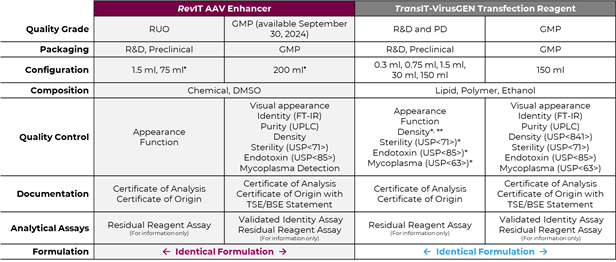 RevIT AAV Enhancer 以及TransIT-VirusGEN 轉染試劑產(chǎn)品參數