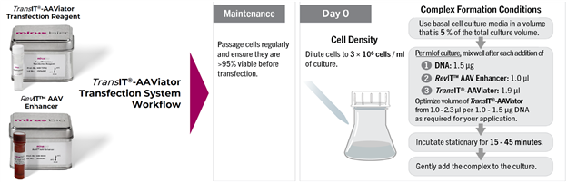新一代專(zhuān)為優(yōu)化AAV 生產(chǎn)工藝而推出的轉染試劑: TransIT®-AAViator 轉染系統: