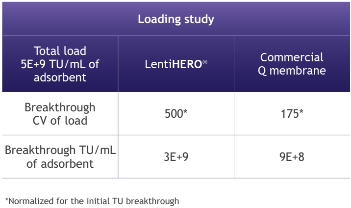 篩選裝置上樣量20ml,測得填料載量為3E+8 IU/ml。