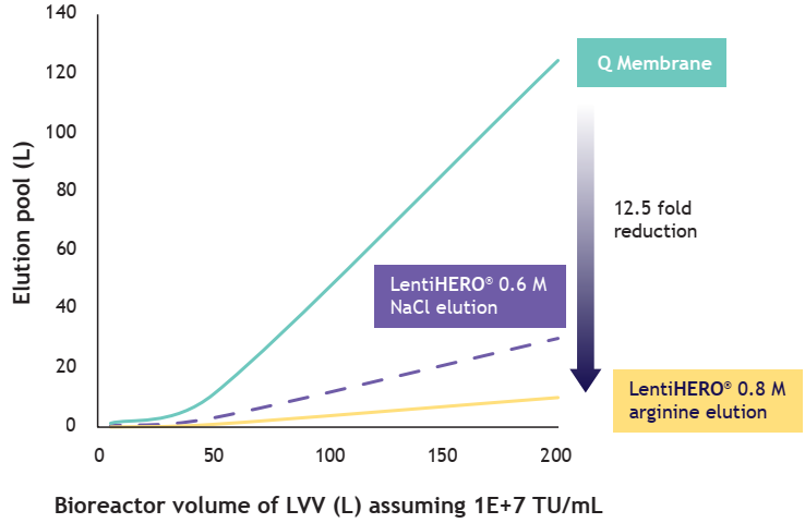 用0.8M精氨酸洗脫,HSV回收率可達到69%,LentiHERO®載量可達1.4E+8 IU/ml,同時(shí)實(shí)現高效的雜質(zhì)去除。
