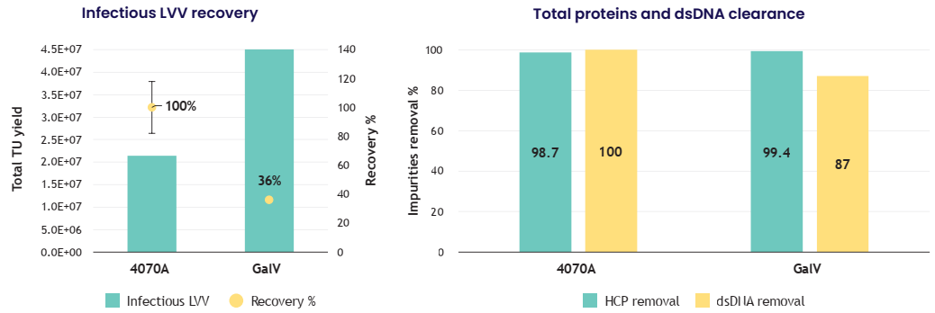 - LentiHERO®成功實(shí)現了非VSV-G慢病毒(4047A:100%,GalV:36%)的高效純化。